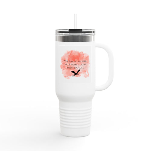 40oz Insulated Travel Mug — Pink Watercolor "Yes, I Breathe Fire" Design